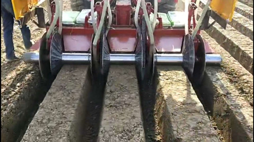 山東菏澤魯富機械加工生產(chǎn)各種型號的起壟機,紅薯起壟機,草莓開溝起壟機,蔬菜起壟機 玉米起壟機,山藥起壟機,大蔥開溝機 鮮姜開溝機,蘿卜起壟機,果樹起壟機等....起壟機機架前部固定有懸掛架,固定在機架前橫梁上的起壟鏟內(nèi)設(shè)置有兩個起壟鏟,左右兩側(cè)的卷膜輥提升臂與固定在機架下的兩個固定提升臂鉸接,卷膜輥裝置位于兩個卷膜輥提升臂之間,兩個膠卷輥由膠卷輥曲柄軸連接,與膠卷輥拉桿鉸接,固定在機架下的膠卷輥吊桿,在機架兩端的膠卷套筒內(nèi)套有兩個接地片,機架前端的兩個外側(cè)設(shè)有兩個接地輪。